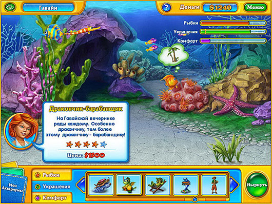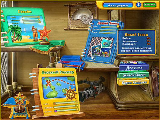 В этой необычной игре вы займетесь разведением рыбок и обустройством аквариумов. Превратить резервуар с прозрачными стенками в настоящий подводный рай будет непросто! Чтобы раздобыть средства для покупки аппаратуры и новых обитателей аквариума, вам придется неоднократно погрузиться с аквалангом на дно моря. Вас ждет оригинальная смесь поиска предметов и экономической стратегии, от которой невозможно оторваться!