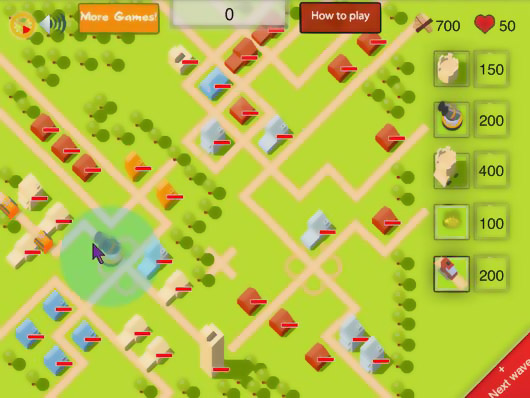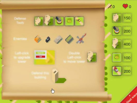 Вы командир оборонительных сил. Вы должны защитить все 12 секторов поселка от захватчиков. У вас есть строительные материалы, 3 типа башен и сумасшедший крестьянин-камикадзе в вашей команде. Удачи!